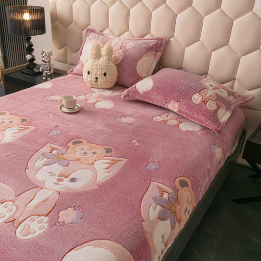 Husă groasa Cocolino cu elastic, pat dublu, 2 fețe de pernă, Roz Floricele, HPC45