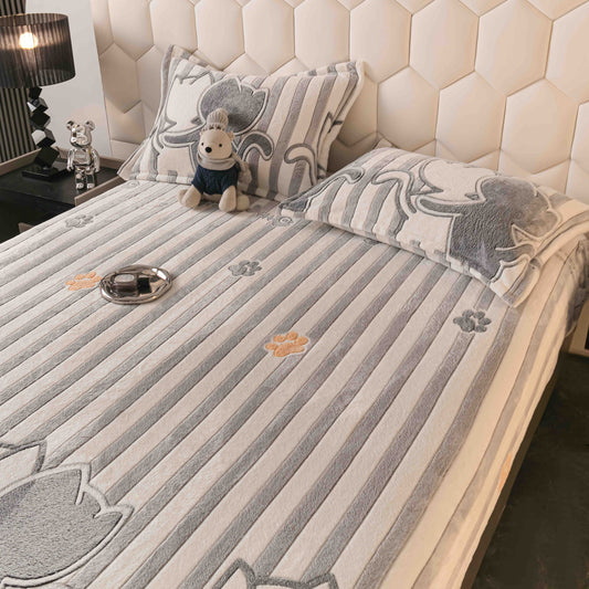 Husa cocolino groasă, cu elastic, pat dublu, include 2 fețe se pernă, HPC035