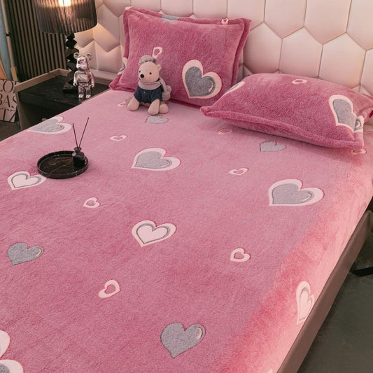 Husă groasa Cocolino cu elastic, pat dublu, 2 fețe de pernă, roz-alb, HPC47