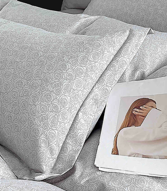 Lenjerie de pat dublu Bumbac finet, cearceaf cu elastic, 6 piese, Gri-bej, LBF62