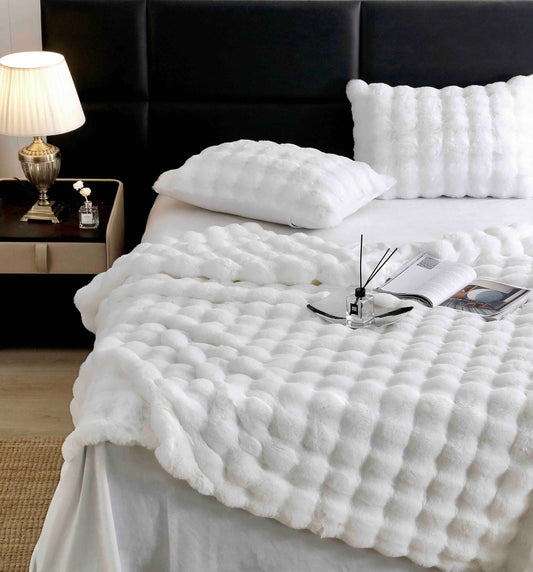 Lenjerie pat dublu, din Blanita artificiala de Iepure,Extra Pufoasa, 6 piese, Alb, LJB001