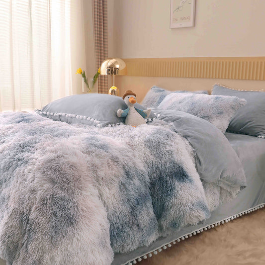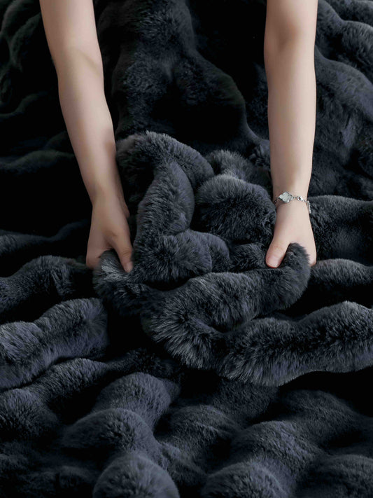 Lenjerie pat dublu, din Blanita artificiala de Iepure, Pufoasa, 6 piese, Gri Inchis, LJB013