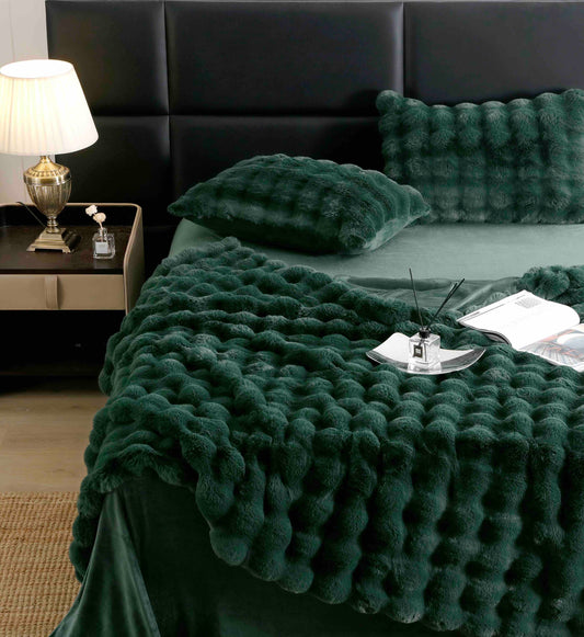 Lenjerie pat dublu, din Blanita artificiala de Iepure, Pufoasa, 6 piese, Verde Smarald, LJB40