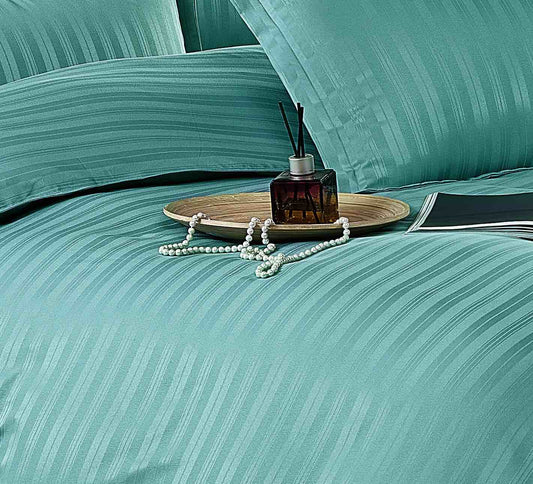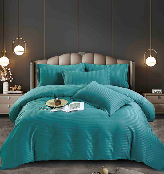 Lenjerie Horeca Deluxe, pat dublu, Damasc finetat , cearsaf normal, 6 piese , Turqoise, DAM005