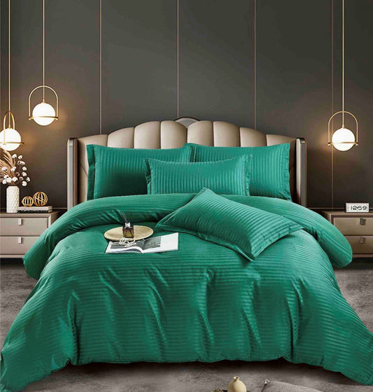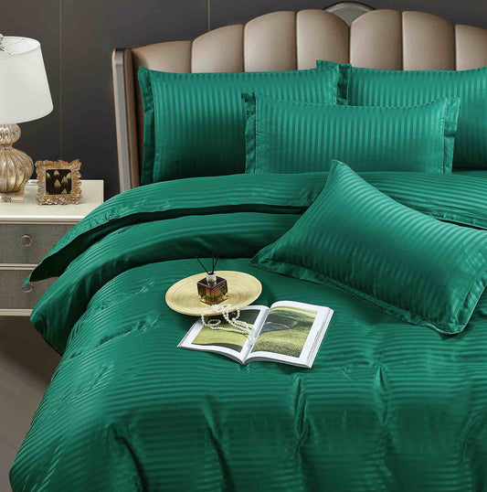 Lenjerie Horeca Deluxe, pat dublu, Damasc finetat , cearsaf normal, 6 piese , Verde-inchis, DAM003