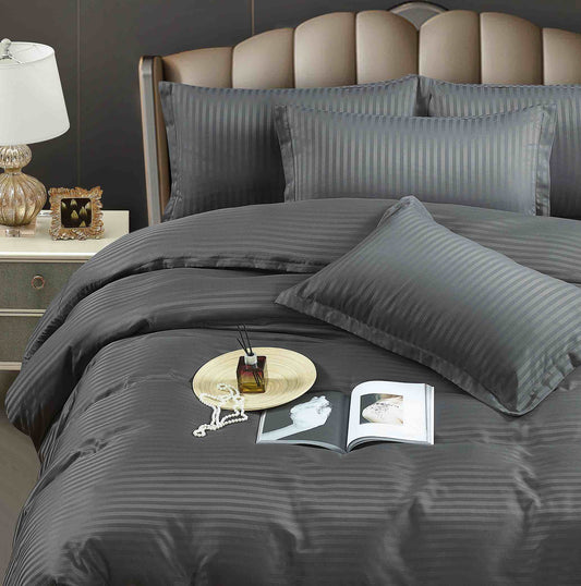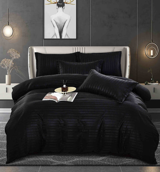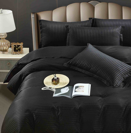 Lenjerie Horeca Deluxe, pat dublu, Damasc finetat , cearsaf normal, 6 piese , Negru, DAM002