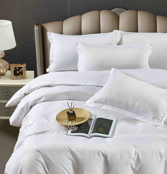 Lenjerie Horeca Deluxe, pat dublu, Damasc finetat , cearsaf normal, 6 piese , Alb, DAM008