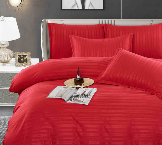 Lenjerie Horeca Deluxe, pat dublu, Damasc finetat , cearsaf normal, 6 piese , Rosu, DAM004