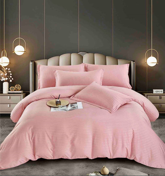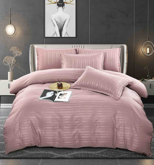 Lenjerie Horeca Deluxe, pat dublu, Damasc finetat , cu elastic , 6 piese , Roz-deschis, DAM025
