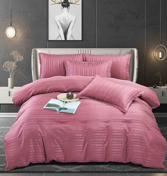 Lenjerie Horeca Deluxe, pat dublu, Damasc finetat , cearsaf normal, 6 piese , Roz-inchis, DAM009