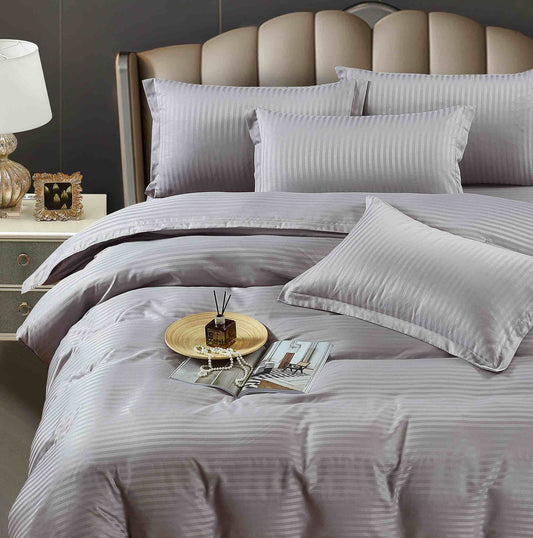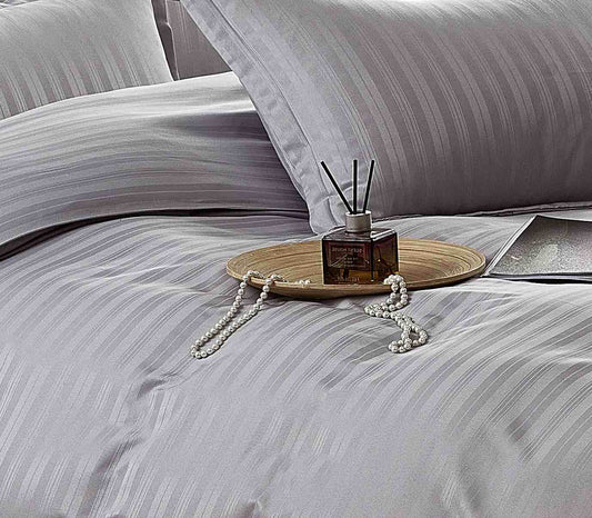 Lenjerie Horeca Deluxe, pat dublu, Damasc finetat , cearsaf normal, 6 piese , Gri-deschis, DAM006