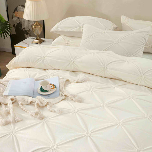 Lenjerie Catifea Deluxe , cu pliuri, 4 piese ,Crem, LCP002