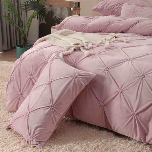 Lenjerie Catifea Deluxe , cu inimi brodate, cearceaf normal , 4 piese ,Roz,LCI013