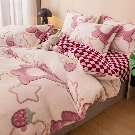 Lenjerie de pat dublu Cocolino , cearceaf cu elastic , 4 piese, Ursuleți Roz , LCC-04