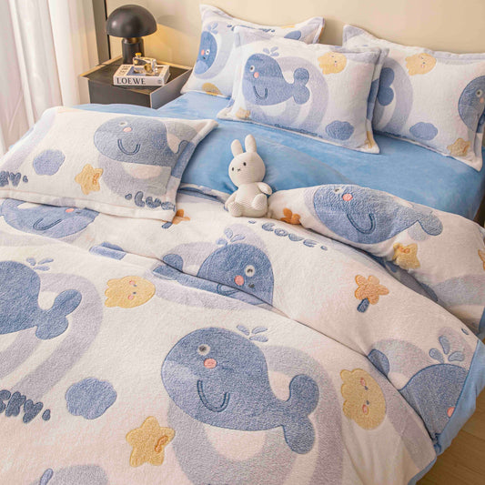 Lenjerie de pat dublu Cocolino , cearceaf cu elastic ,4 piese, Model Lucky