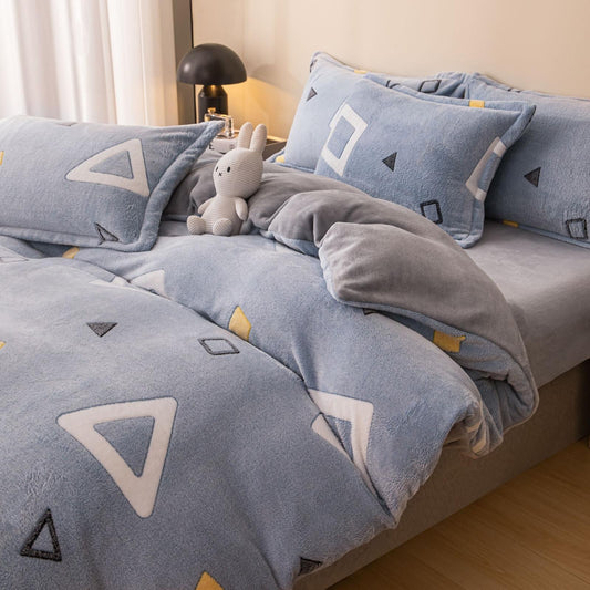 Set Lenjerie pat dublu cocolino TRICOT completă , Pătură cu Blaniță + husă cu elastic, 4 piese , Gri Închis, SET02