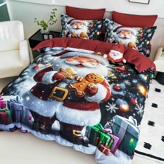 Set lenjerie de pat dublu Model Craciun BUMBAC FINET, cearsaf normal, 6 piese, XMAS8