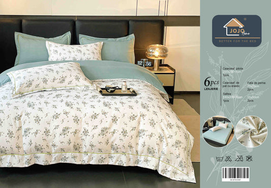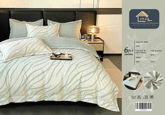 Lenjerie de Pat Dublu, Model Lux, Cutie Cadou, 6 Piese, Cearceaf cu Elastic, Bumbac, LJH-011