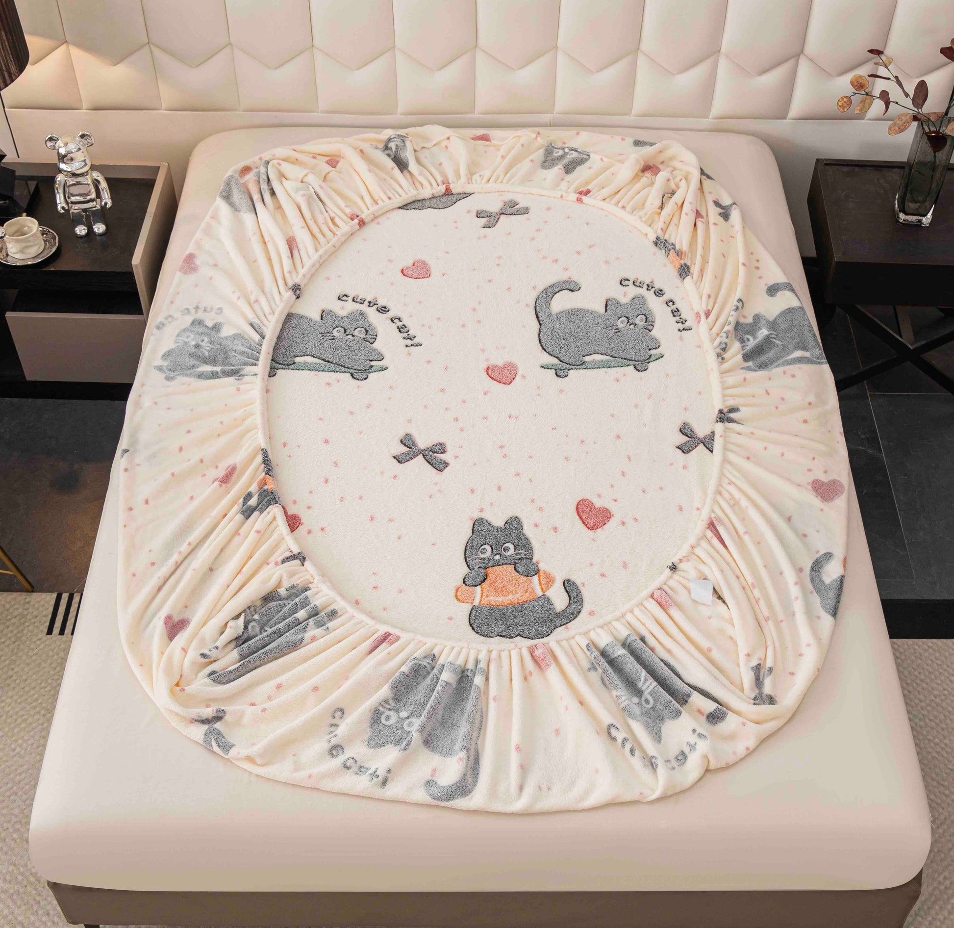 Husă groasa Cocolino cu elastic, pat dublu, 2 fețe de pernă, Pisicuțe, HPC49