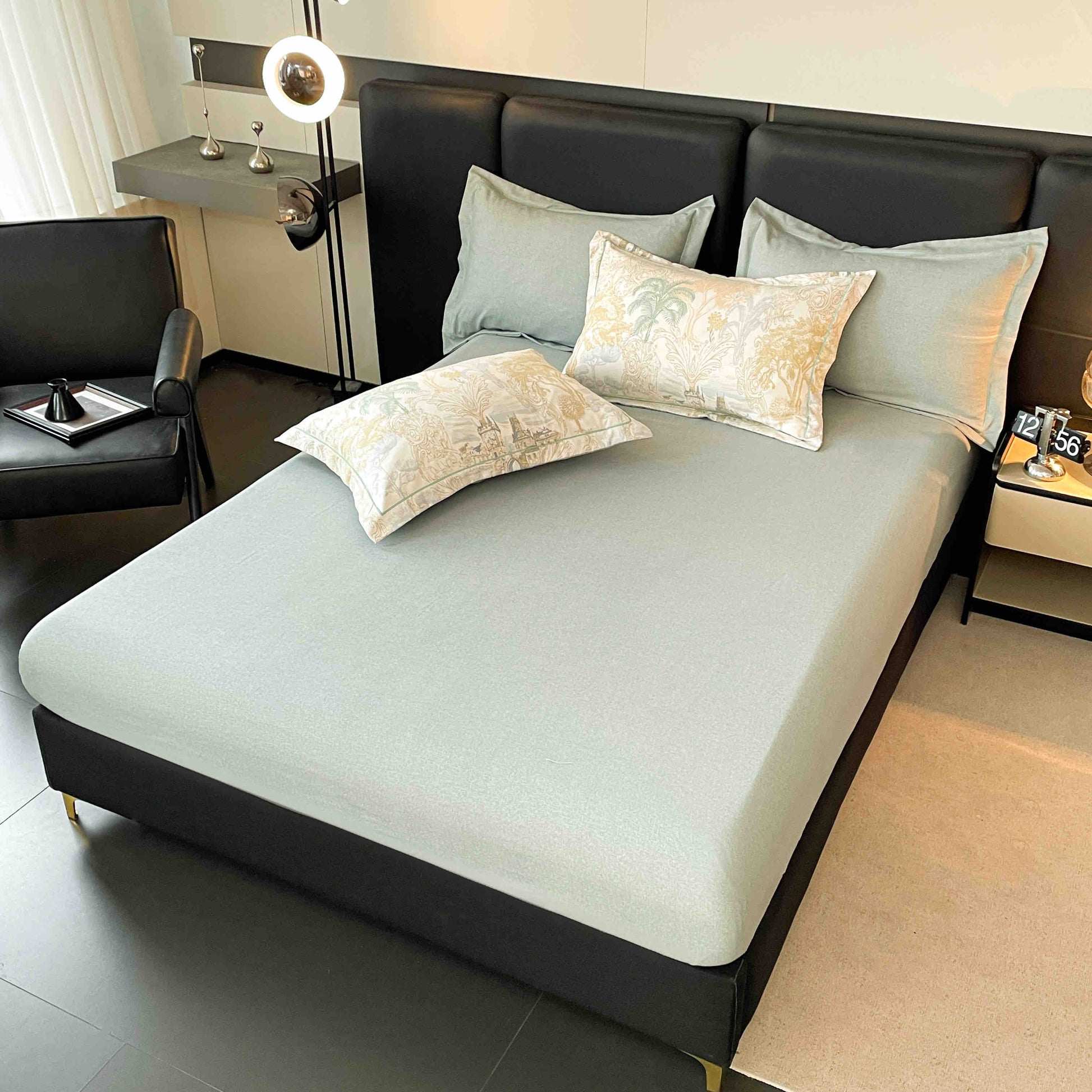 Lenjerie de Pat Dublu, Model Lux, Cutie Cadou, 6 Piese, Cearceaf cu Elastic, Bumbac, LJH-07