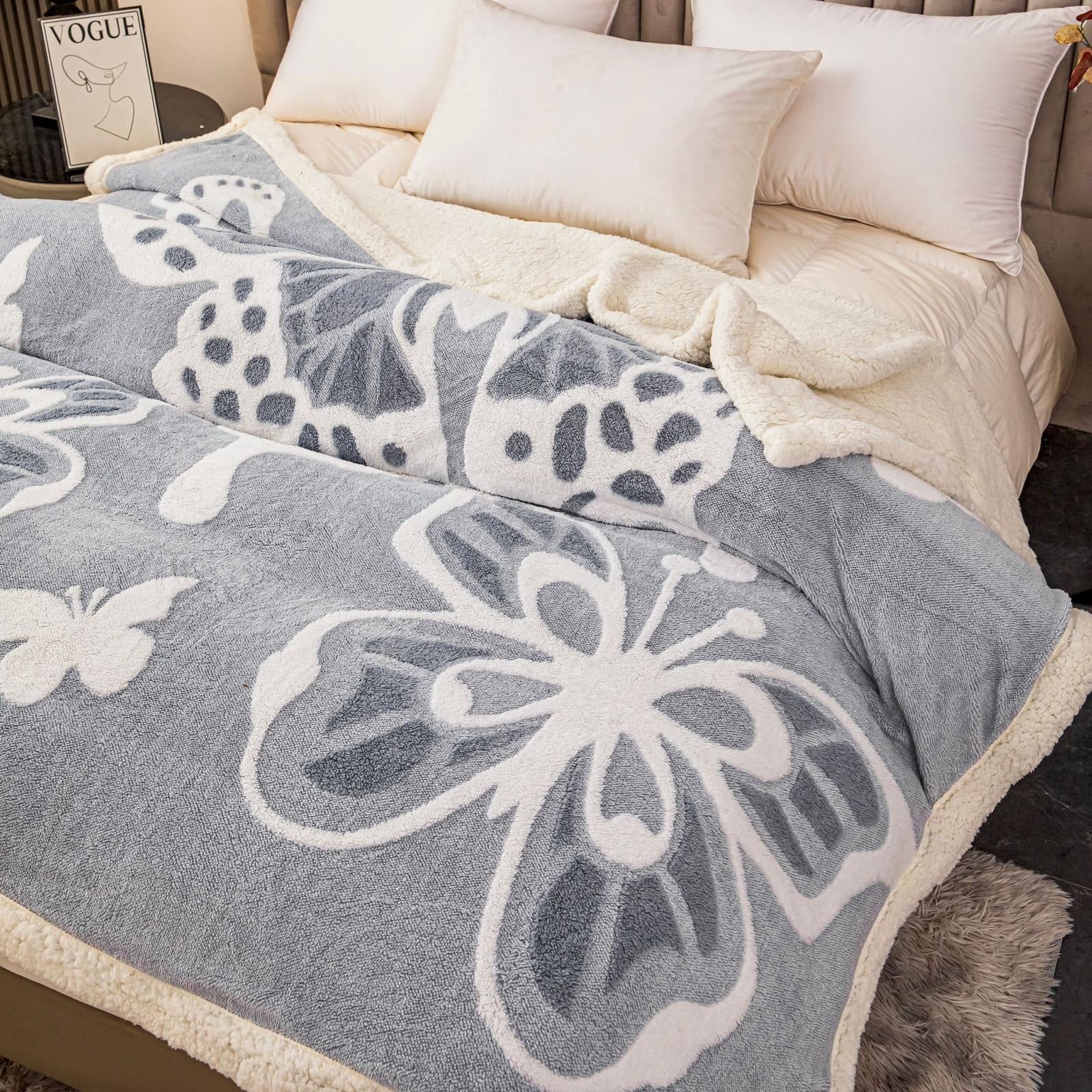 Pătură groasă Cocolino cu blăniță – model Fluturi 3D, 200x230 cm – Jojo Home