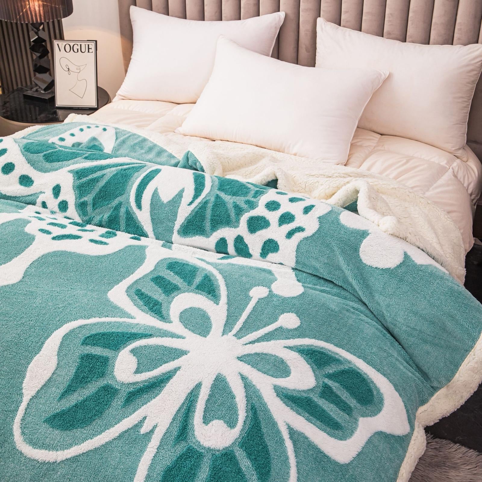 Patura groasa Cocolino cu blăniță, 200x230, Model Fluturi 3D, Turcoaz, cod PTR18