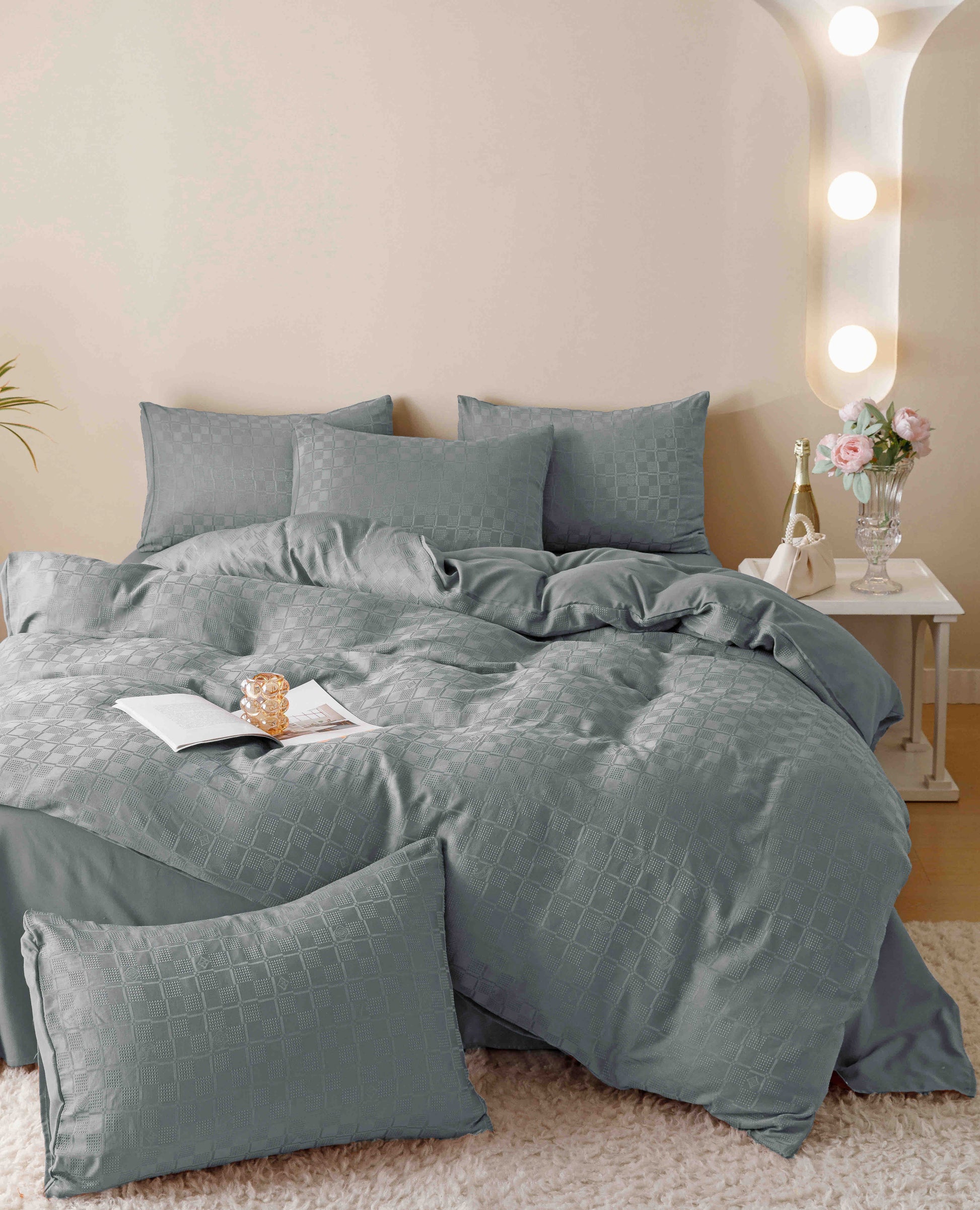 Lenjerie de pat dublu, Jacquard Finetat, 6 piese, Gri Deschis, LJQ007
