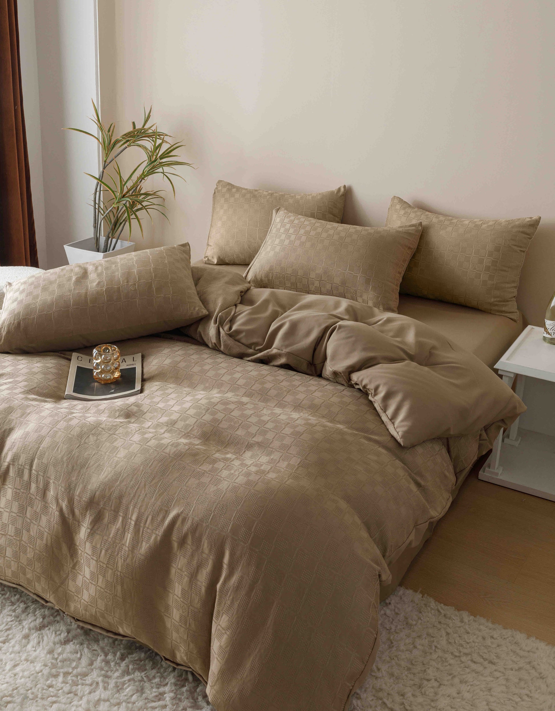 Lenjerie de pat dublu, Jacquard Finetat, 6 piese,Maro, LJQ001