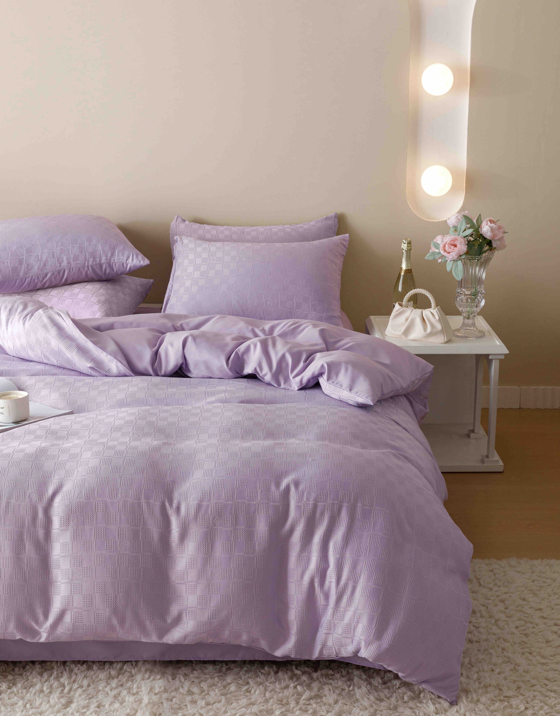 Lenjerie de pat dublu, Jacquard Finetat, 6 piese, Mov deschis, LJQ002