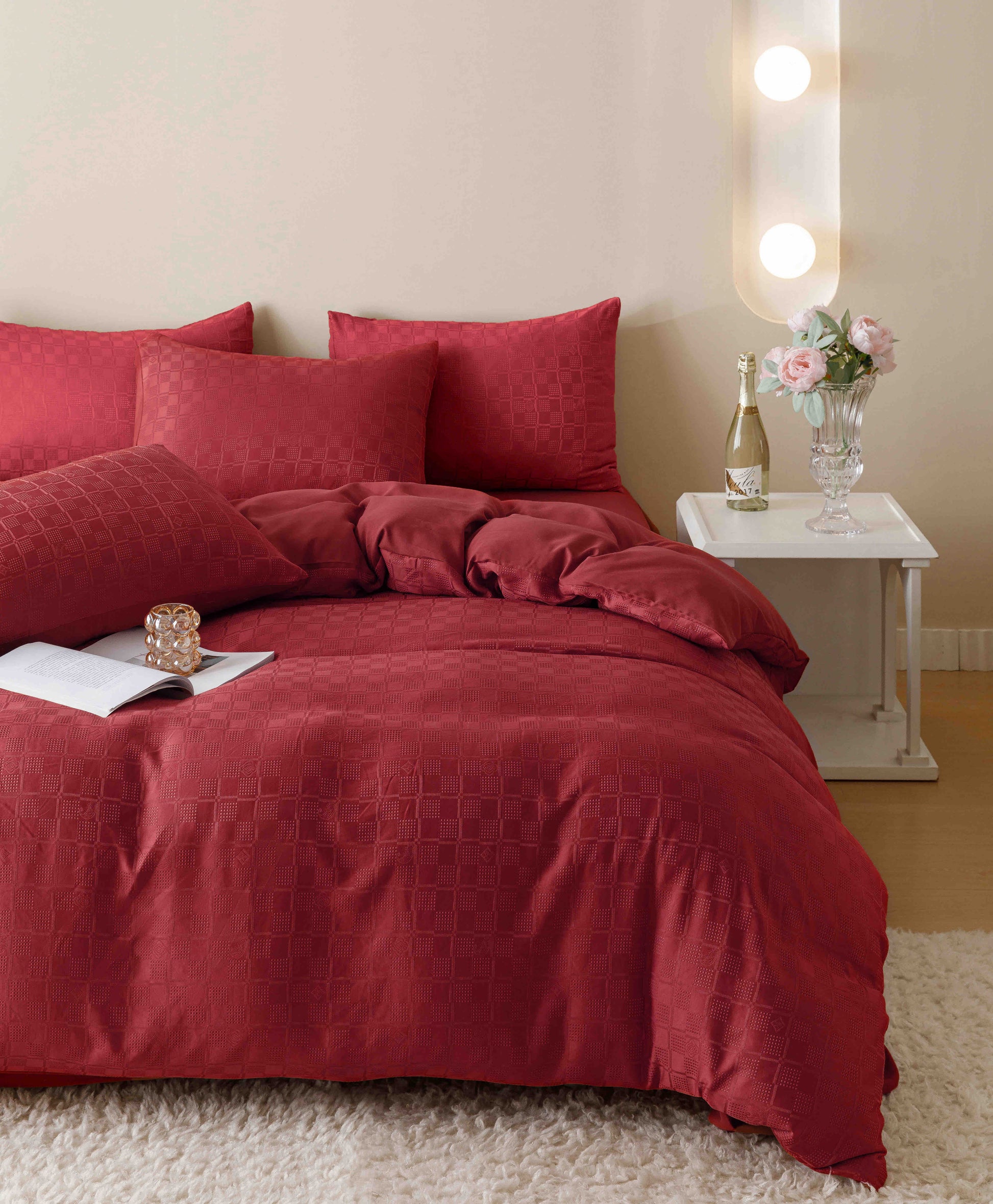 Lenjerie de pat dublu, Jacquard Finetat, 6 piese, Rosu, LJQ012
