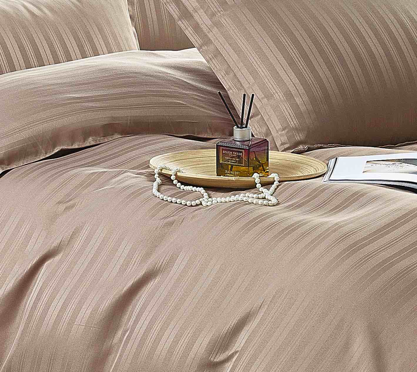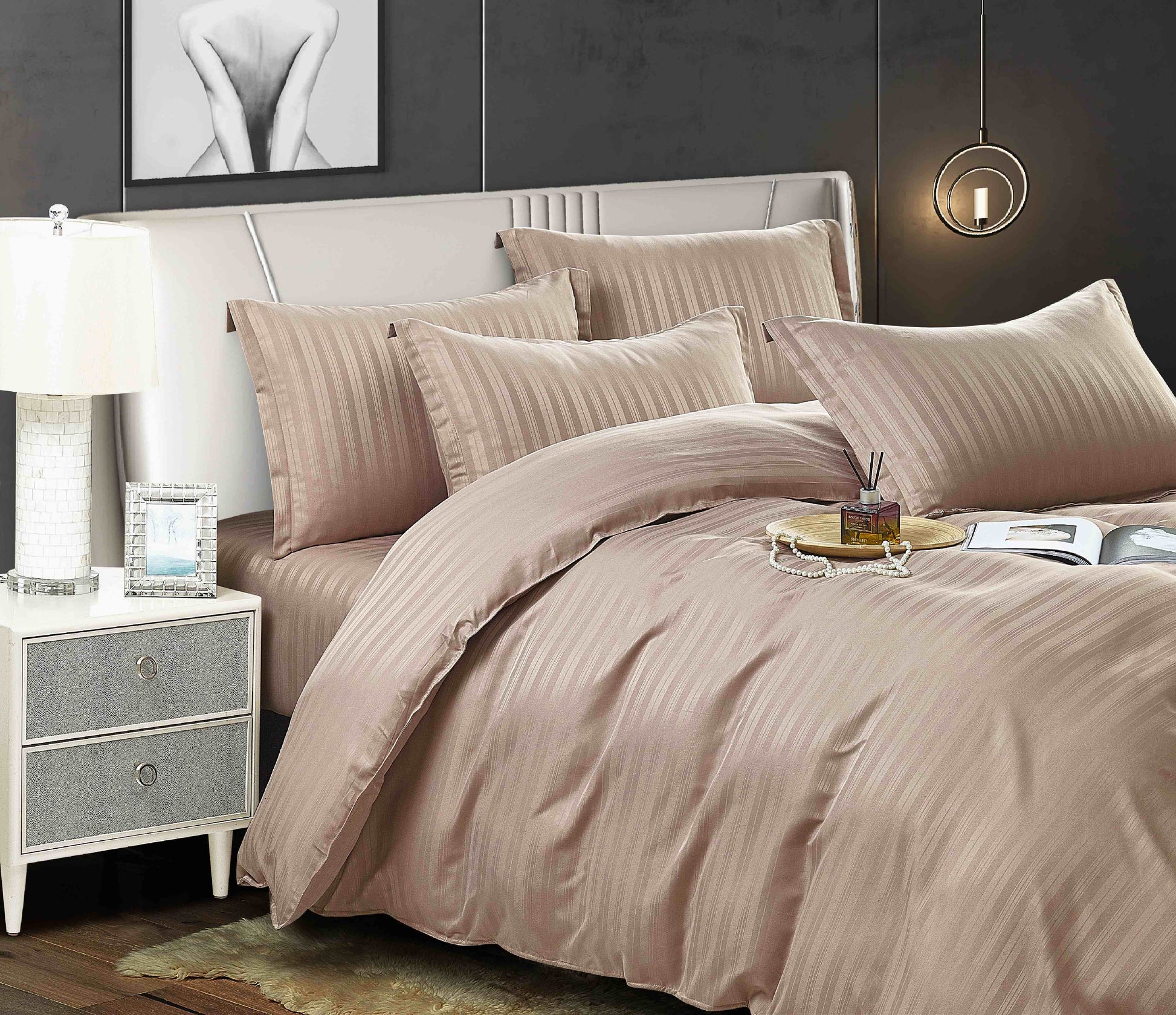 Lenjerie Horeca Deluxe, pat dublu, Damasc finetat , cearsaf normal, 6 piese , Bej, DAM007