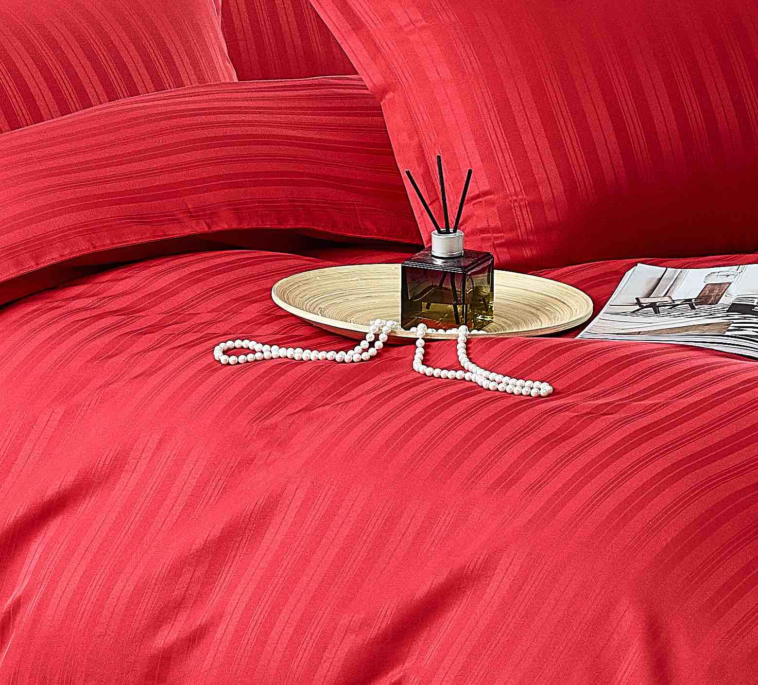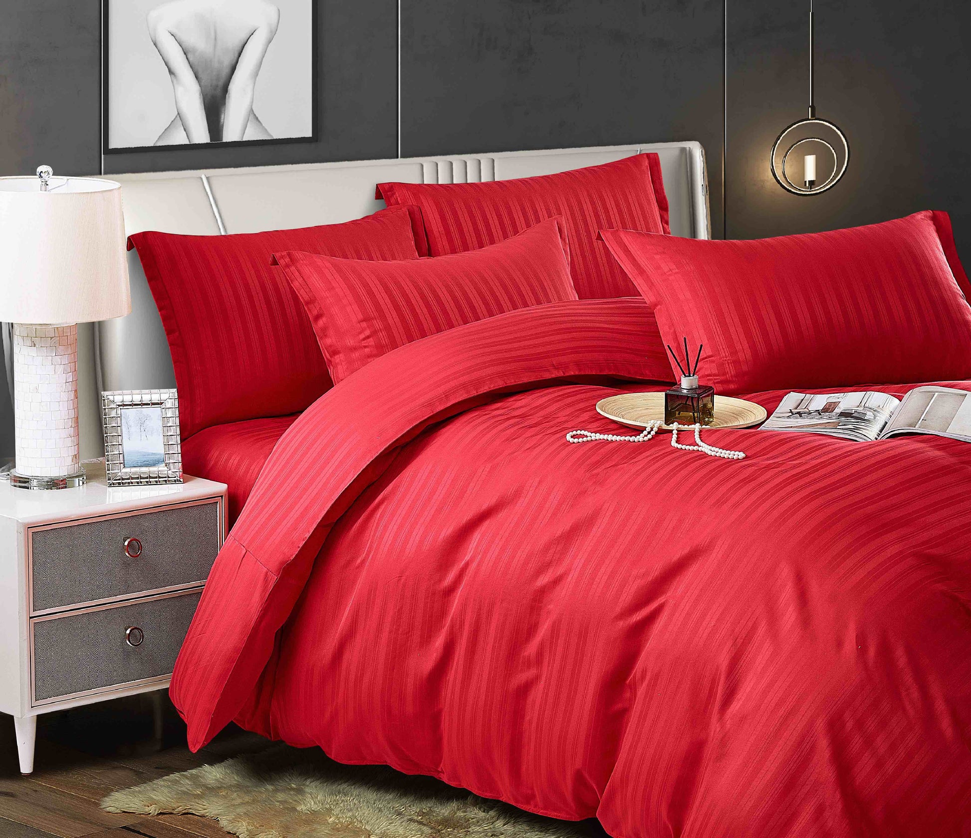Lenjerie Horeca Deluxe, pat dublu, Damasc finetat , cearsaf normal, 6 piese , Rosu, DAM004