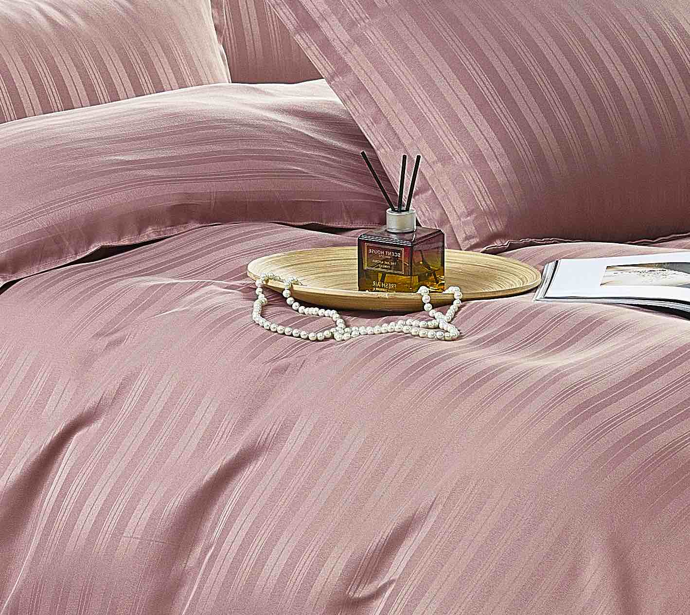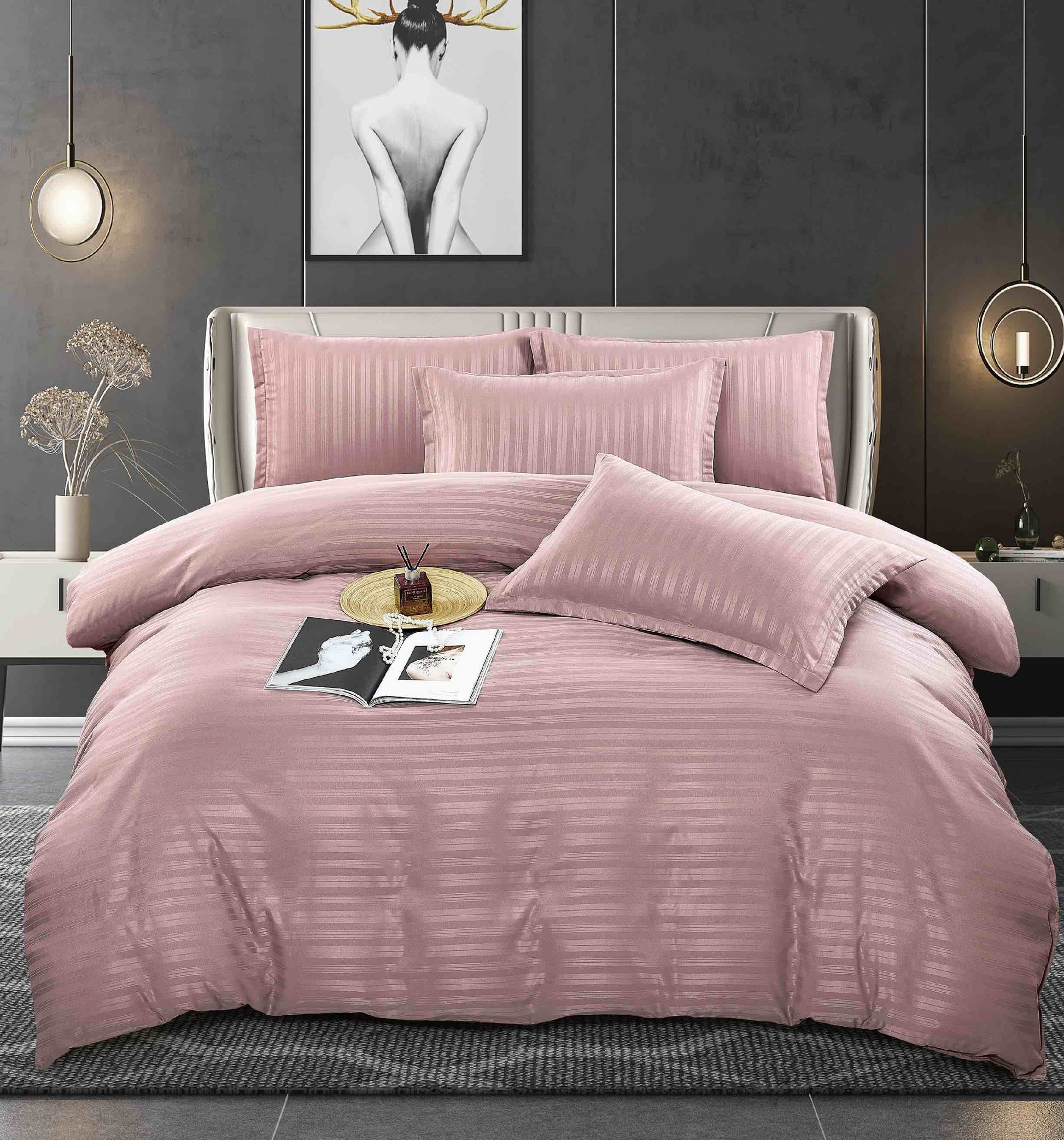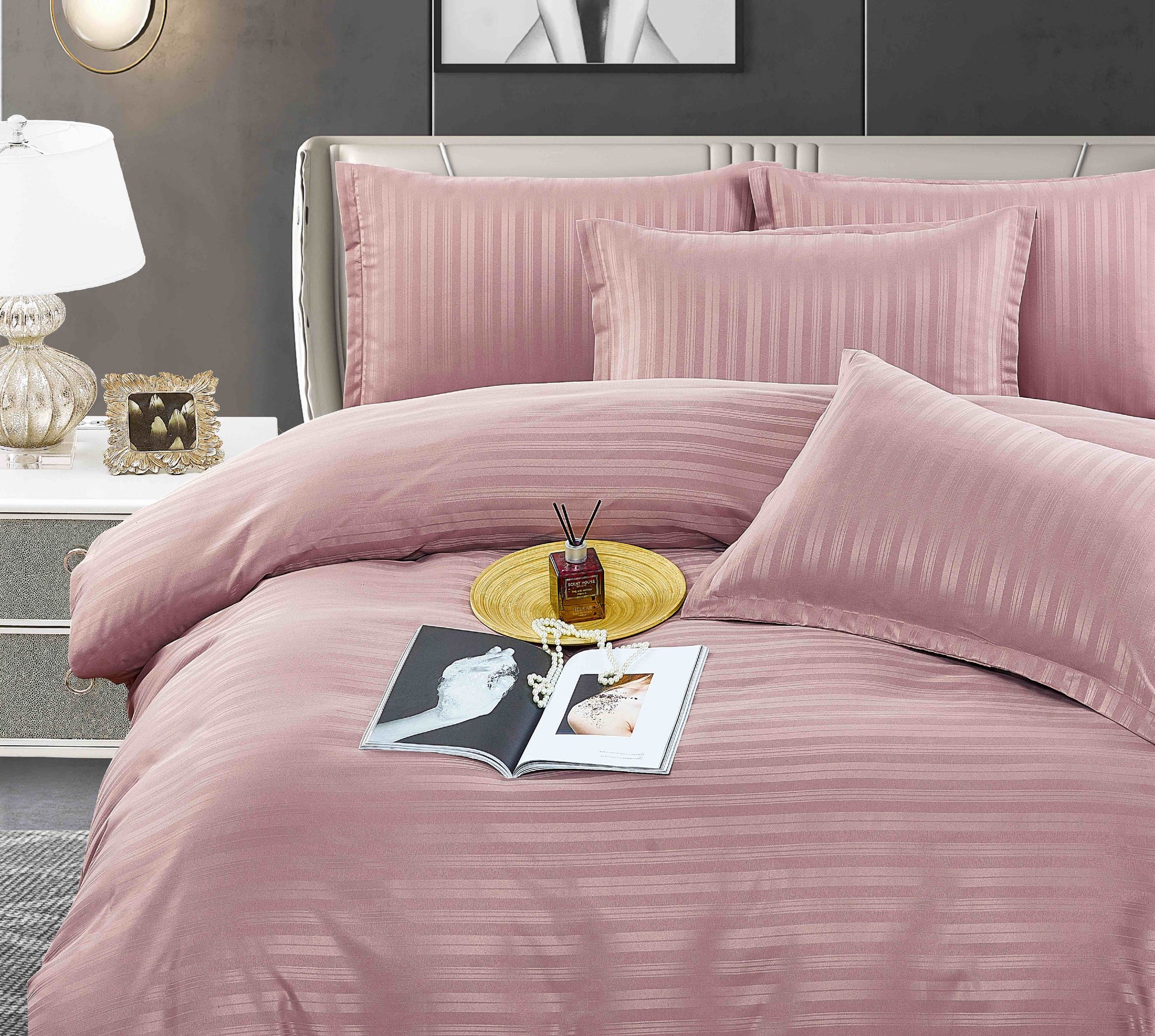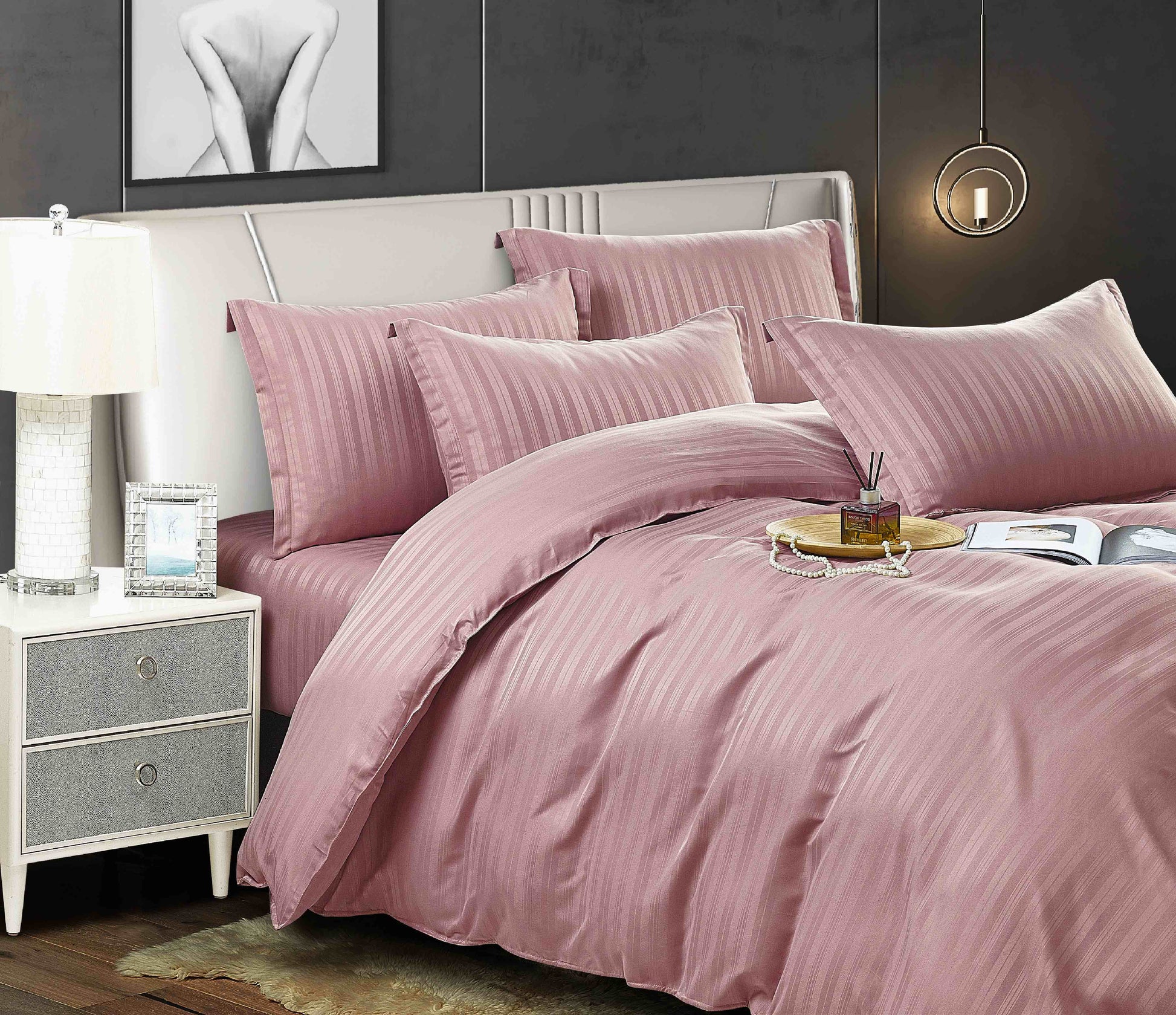 Lenjerie Horeca Deluxe, pat dublu, Damasc finetat , cearsaf normal, 6 piese , Roz, DAM001