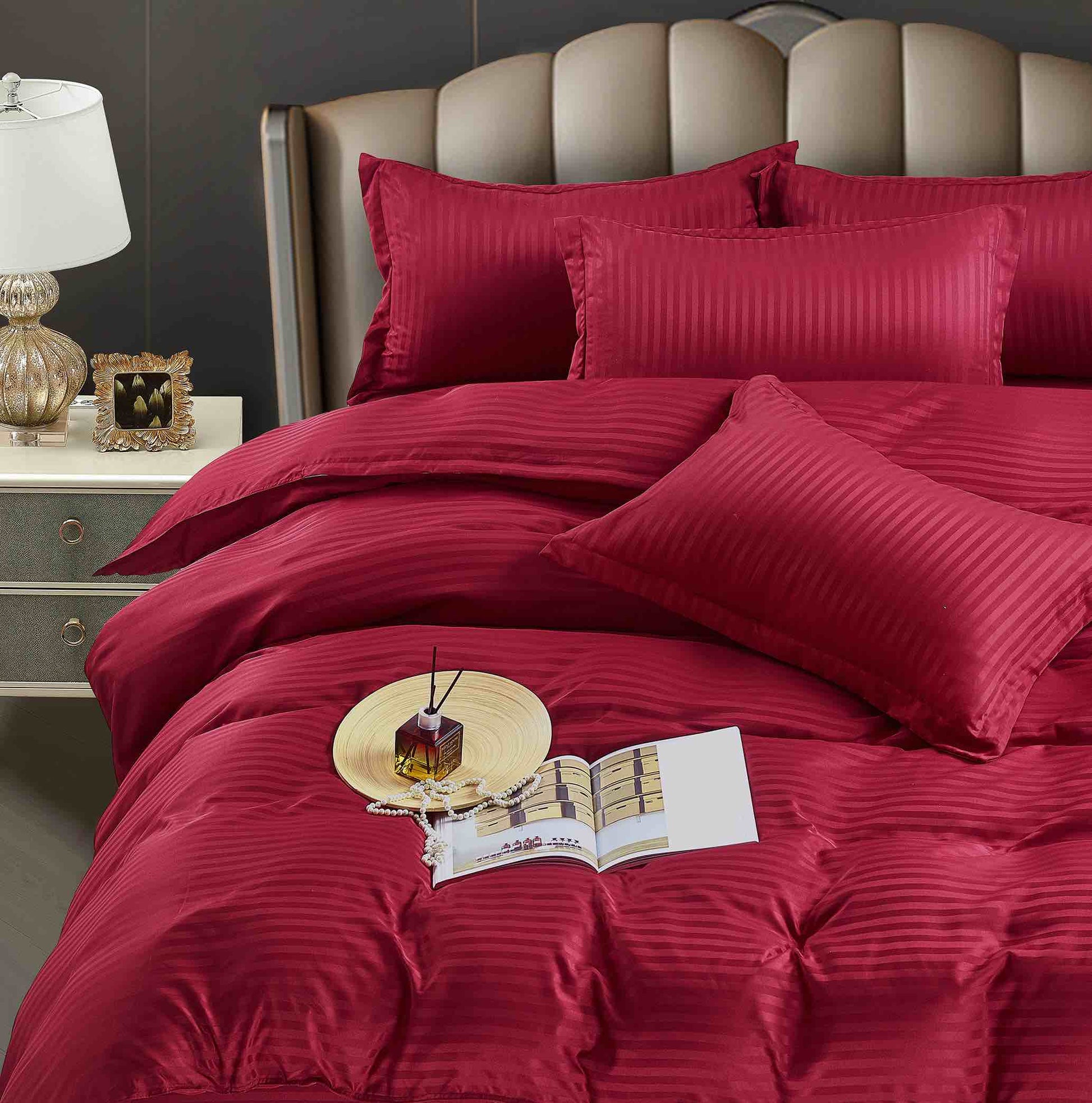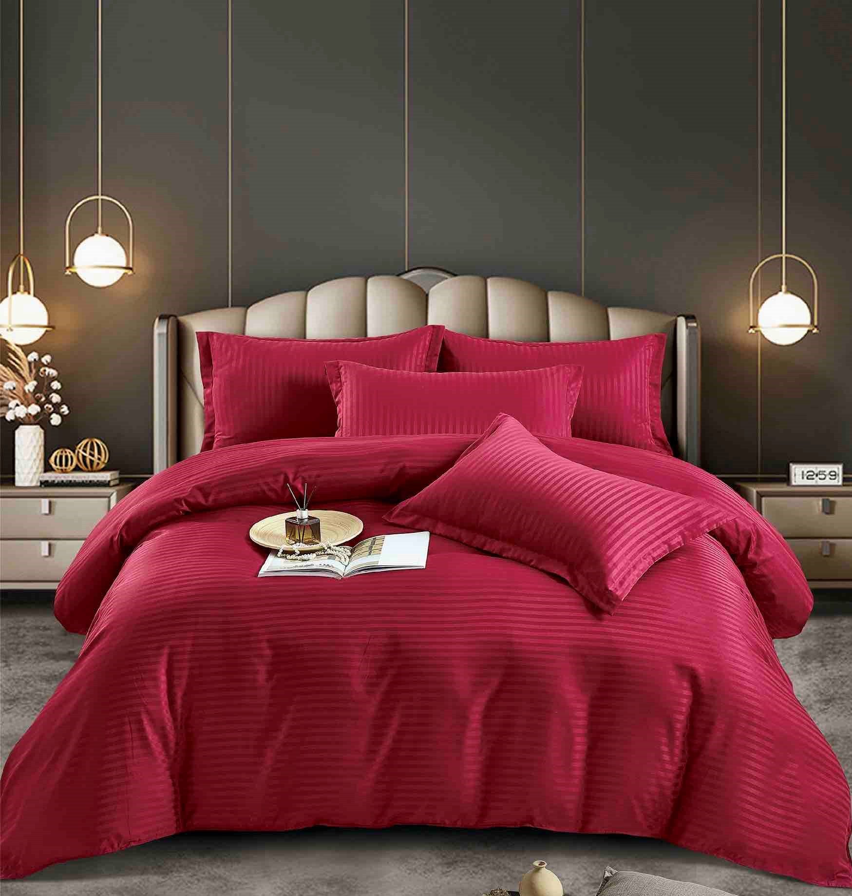 Lenjerie Horeca Deluxe, pat dublu, Damasc finetat , cu elastic , 6 piese , Rosu,DAM027