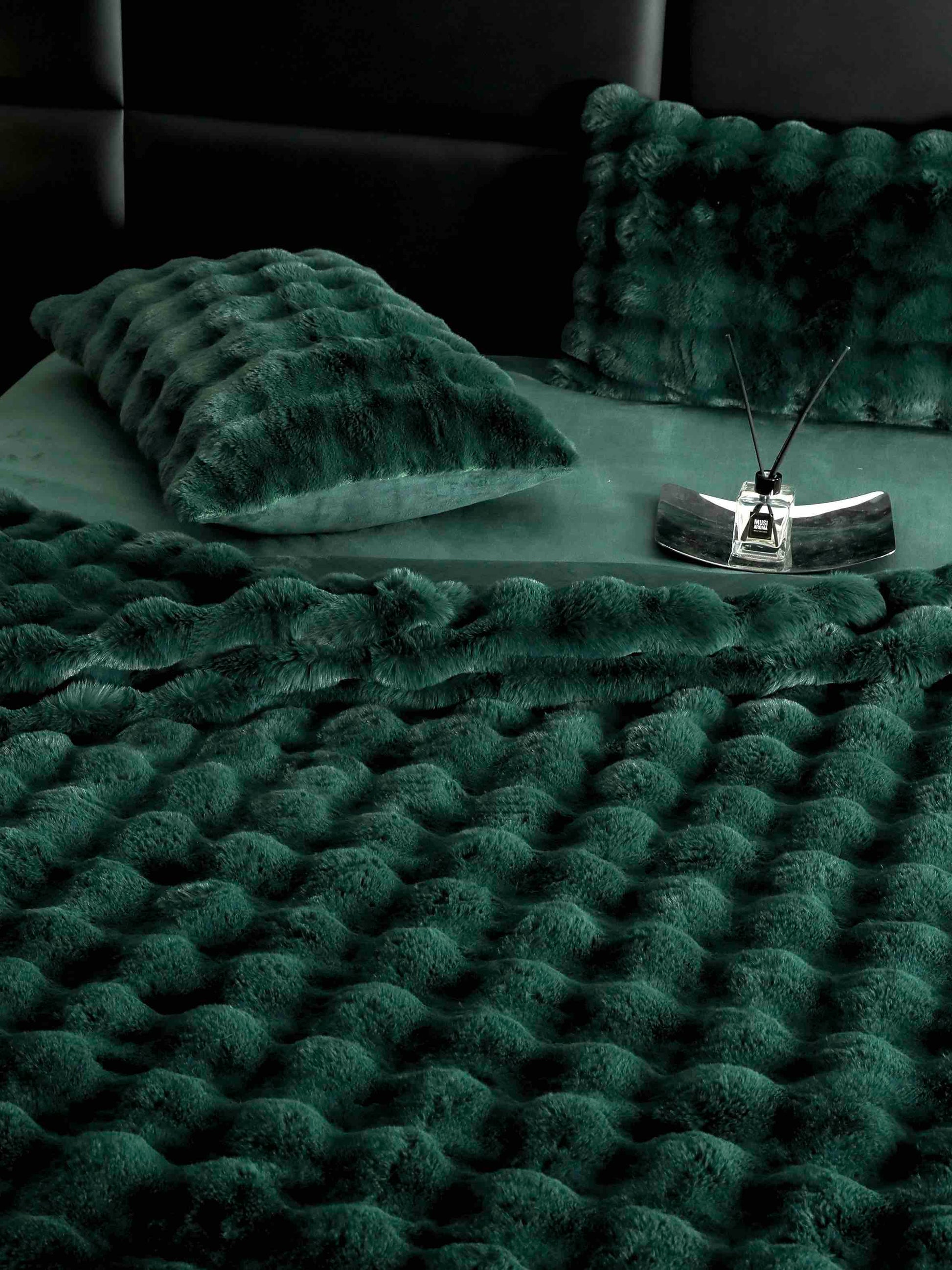 Lenjerie pat dublu, din Blanita artificiala de Iepure, Pufoasa, 6 piese, Verde Smarald, LJB40