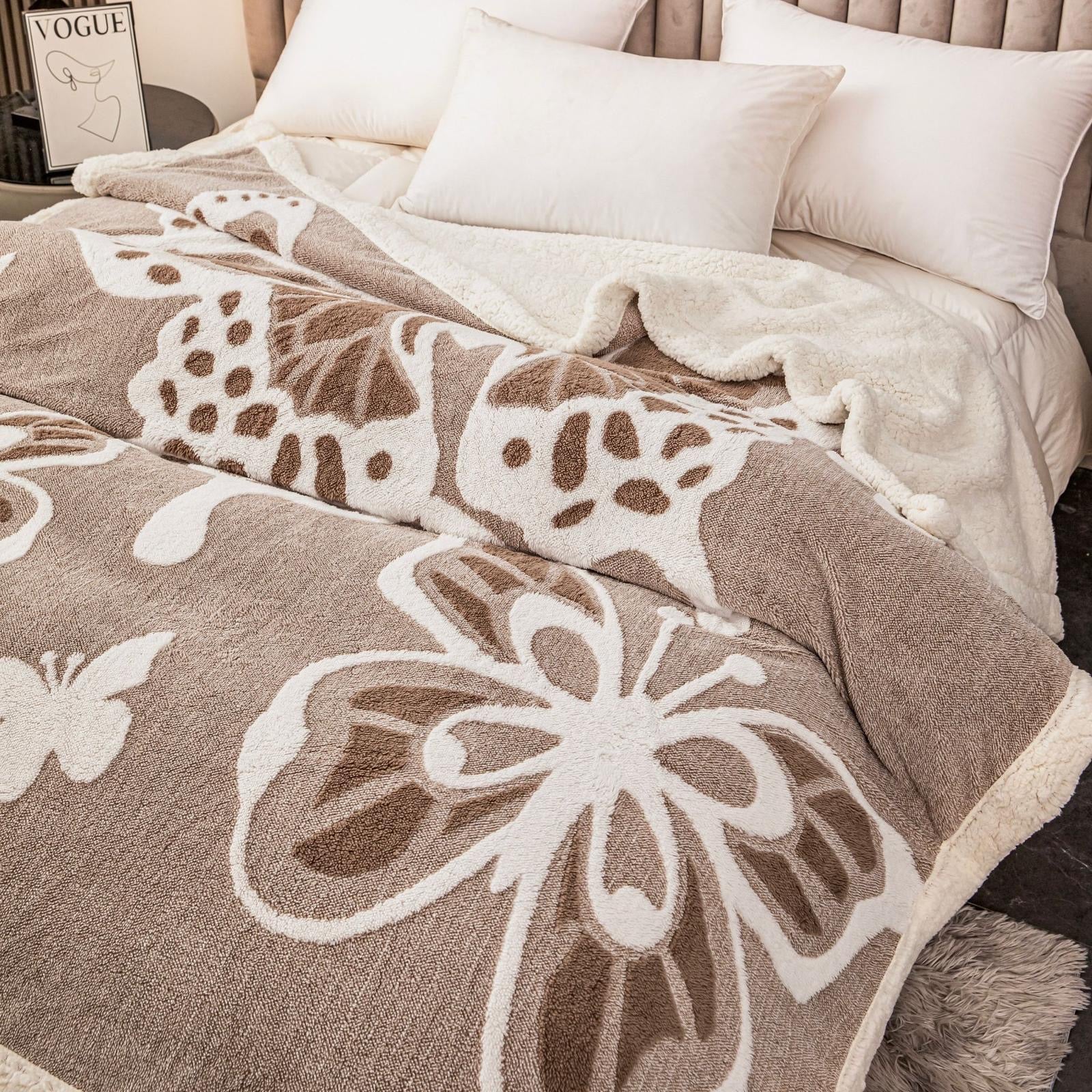 Patura groasa Cocolino cu blăniță, 200x230, Model Fluturi 3D, Maro, cod PTR11