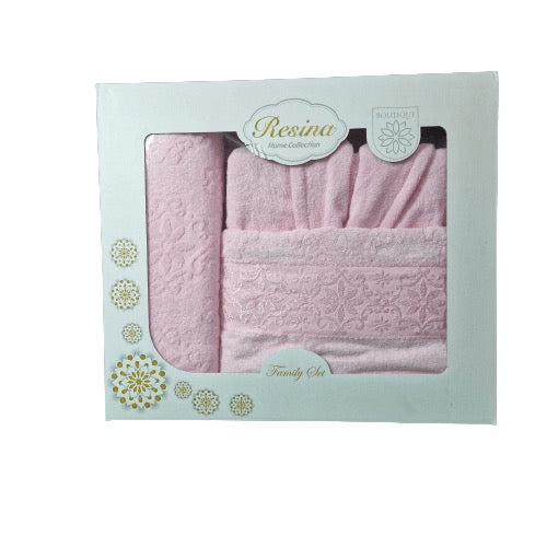 Set Halat si Prosoape din Bumbac 100%, 3 Piese, Resina, Roz Pal