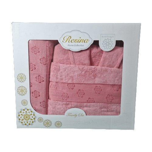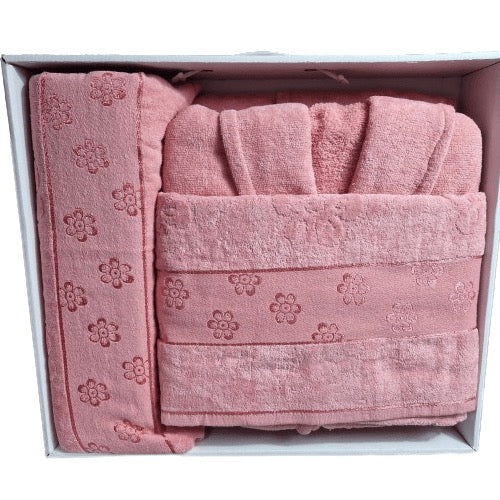 Set Halat si Prosoape din Bumbac 100%, 3 Piese, Resina, Roz Piersica