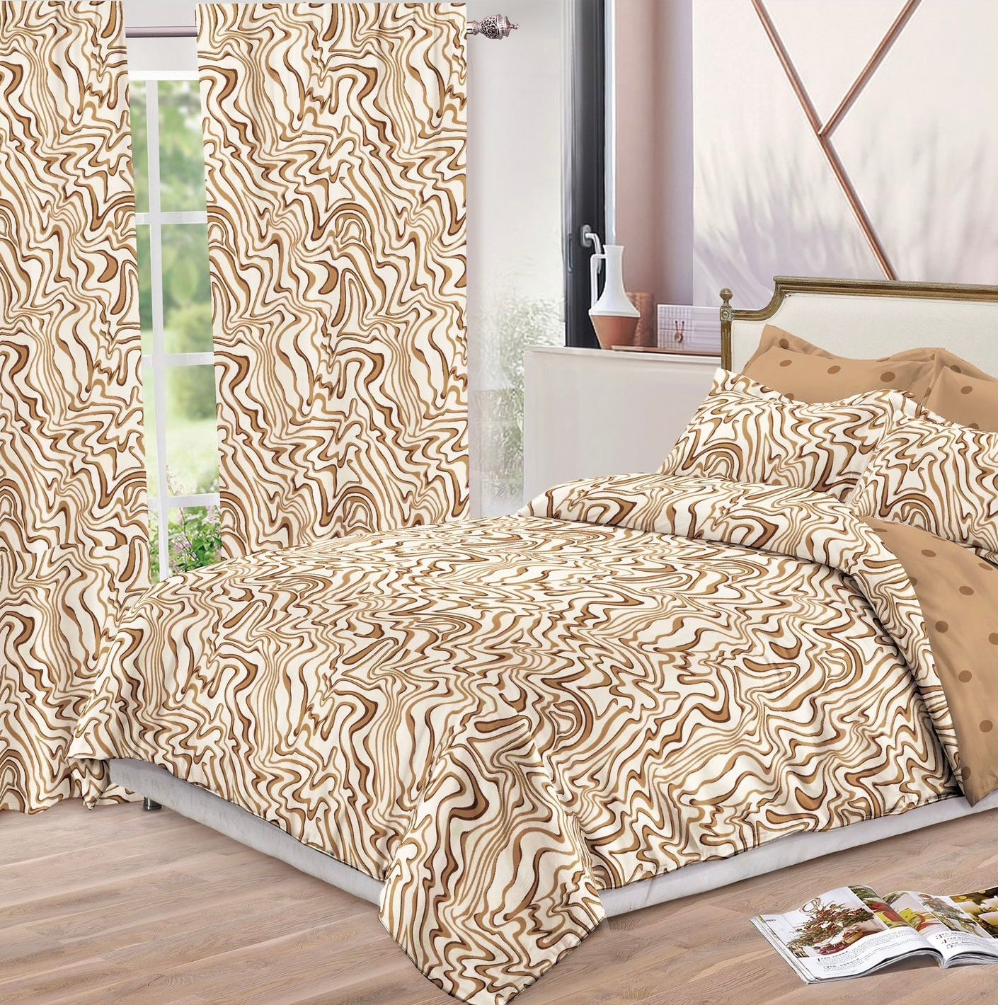 Set Lenjerie de pat Dublu Pucioasa + Draperii , set 8 piese, Bej-Maro, LDP13